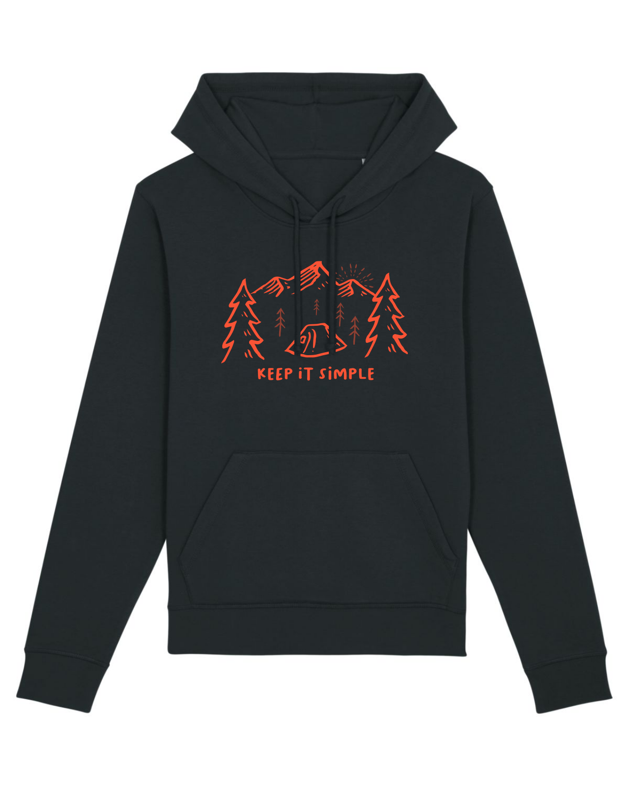 Hanorac unisex, model color, mesaj "Keep it simple (mountain view)", ideal pentru pasionatii de drumetie, camping sau alte activitati outdoor.