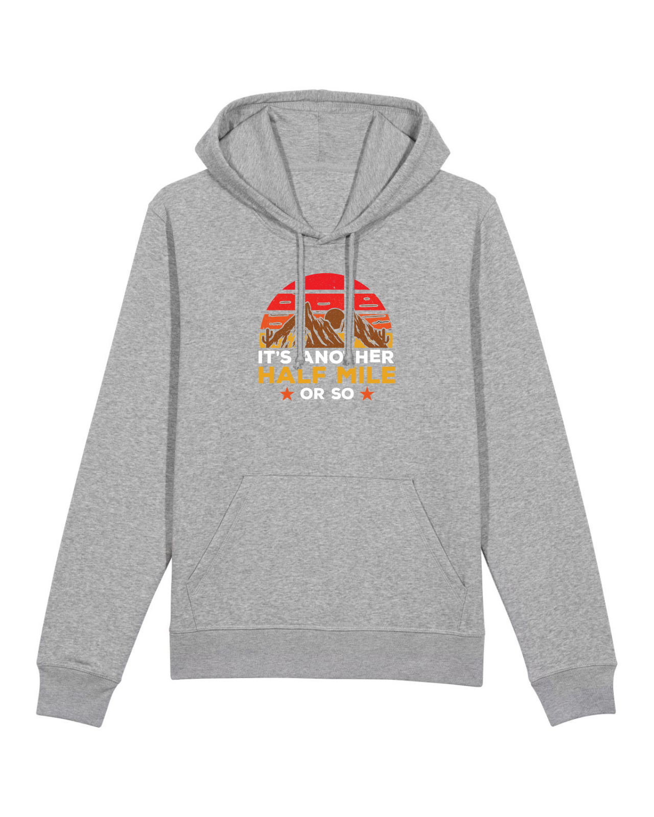 Hanorac unisex, model color, mesaj "It's another half mile or so", ideal pentru pasionatii de drumetie, camping sau alte activitati outdoor.