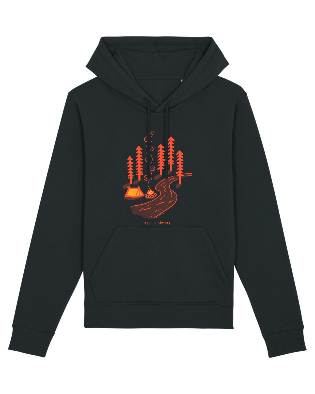 Hanorac unisex, model color, cu mesaj "Keep it simple (by the water)", ideal pentru pasionatii de drumetie, camping sau alte activitati outdoor.