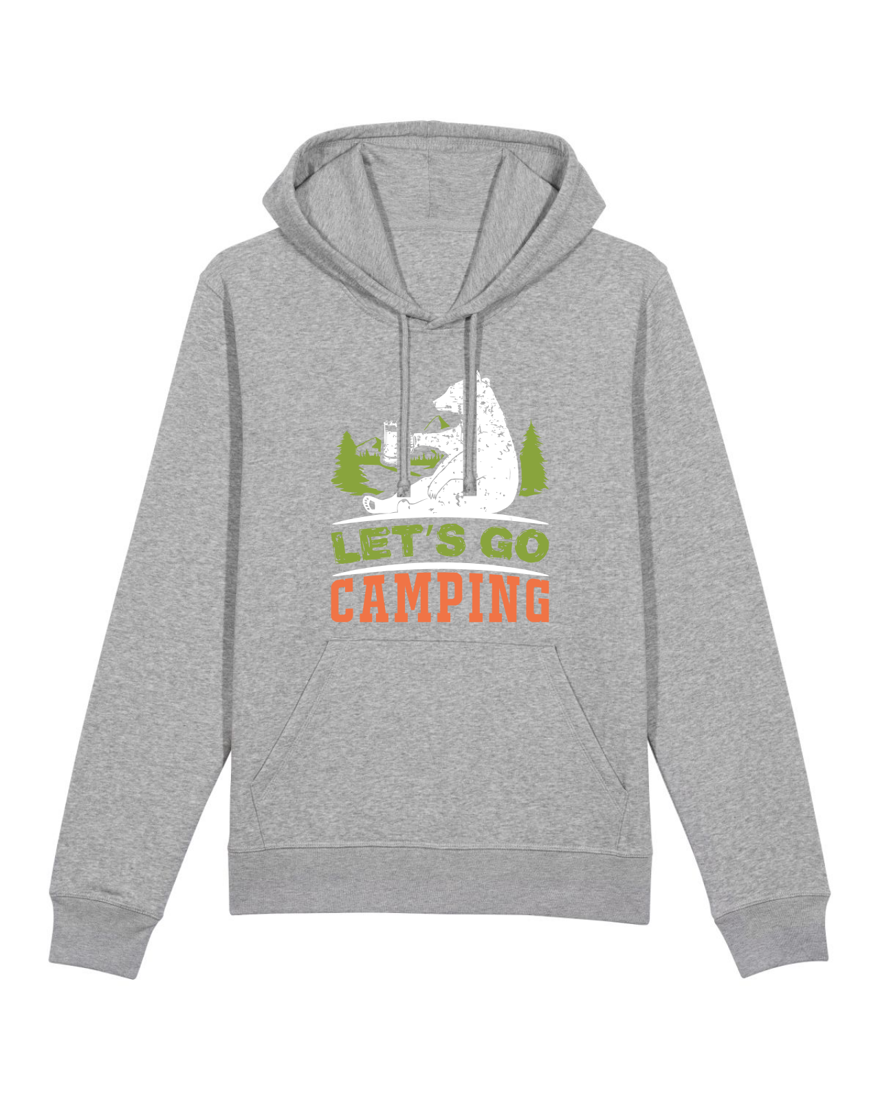 Hanorac unisex, model color, mesaj "Let's go camping", ideal pentru pasionatii de drumetie, camping sau alte activitati outdoor.