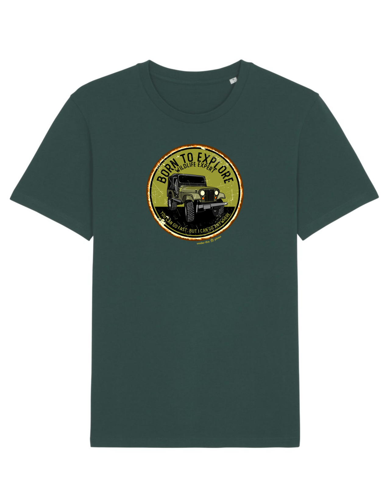 Tricou unisex/barbati, model color, mesaj "Born To Explore", ideal pentru pasionatii de offroad, sporturi cu motor sau alte activitati outdoor.