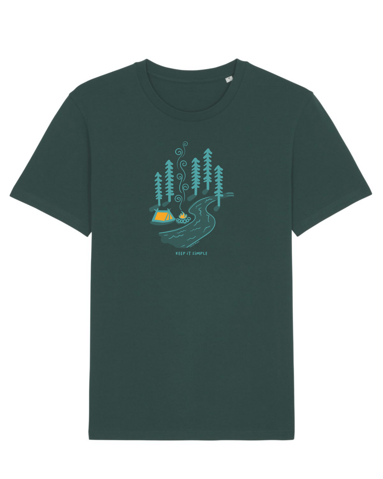 Tricou unisex/barbati, model color, mesaj "Keep it simple (by the water)", ideal pentru pasionatii de drumetie, camping sau alte activitati outdoor.