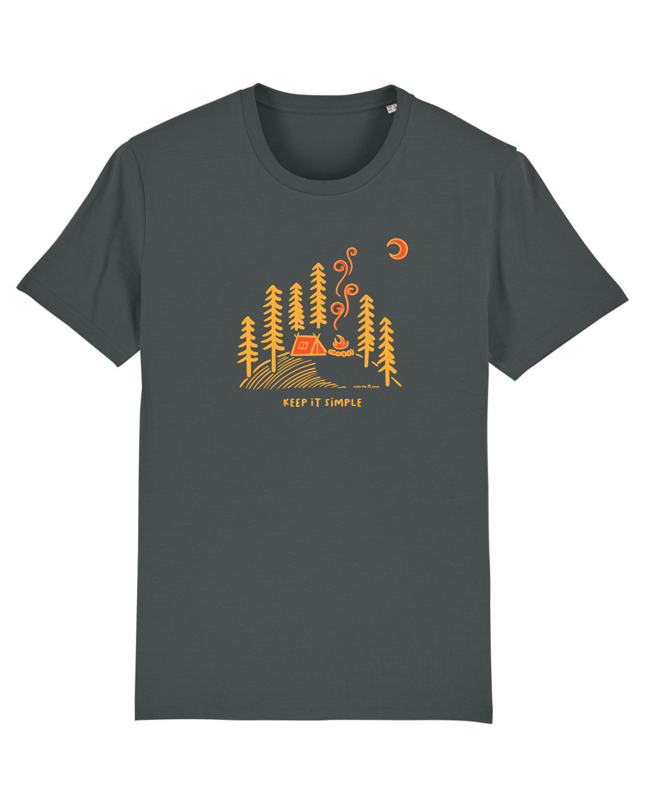 Tricou unisex/barbati, model color, mesaj "Keep it simple (camp on)", ideal pentru pasionatii de drumetie, camping sau alte activitati outdoor.