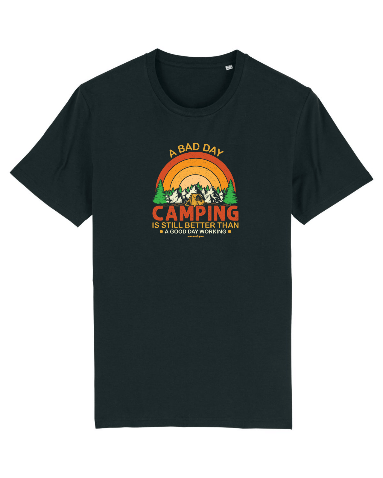 Tricou unisex/barbati, model color, mesaj "Camping is Better", ideal pentru pasionatii de drumetie, camping sau alte activitati outdoor.