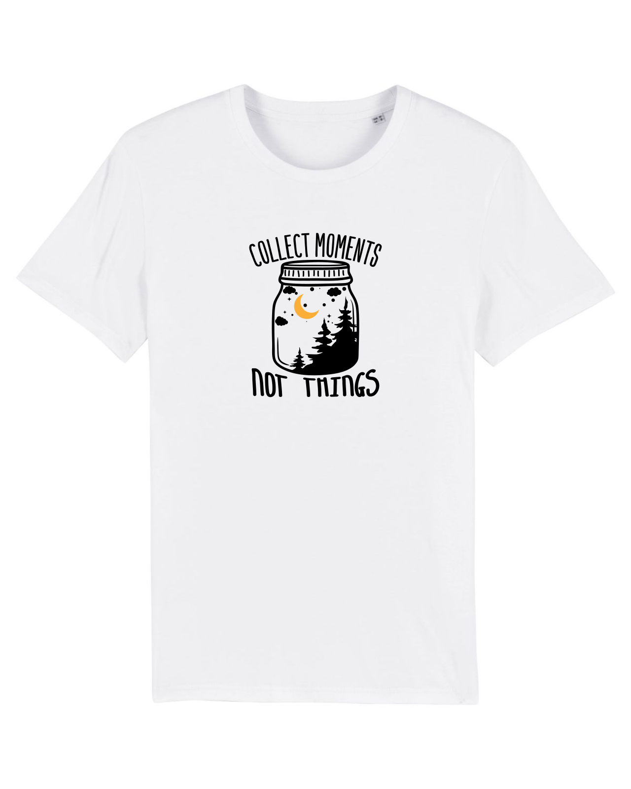 Tricou unisex/barbati, model color, mesaj "Collect moments, not things", ideal pentru pasionatii de drumetie, camping sau alte activitati outdoor.