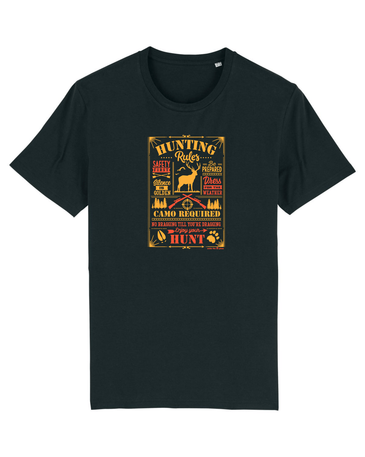 Tricou unisex/barbati, model color, mesaj "Hunting Rules", ideal pentru pasionatii de vanatoare sau alte activitati outdoor.