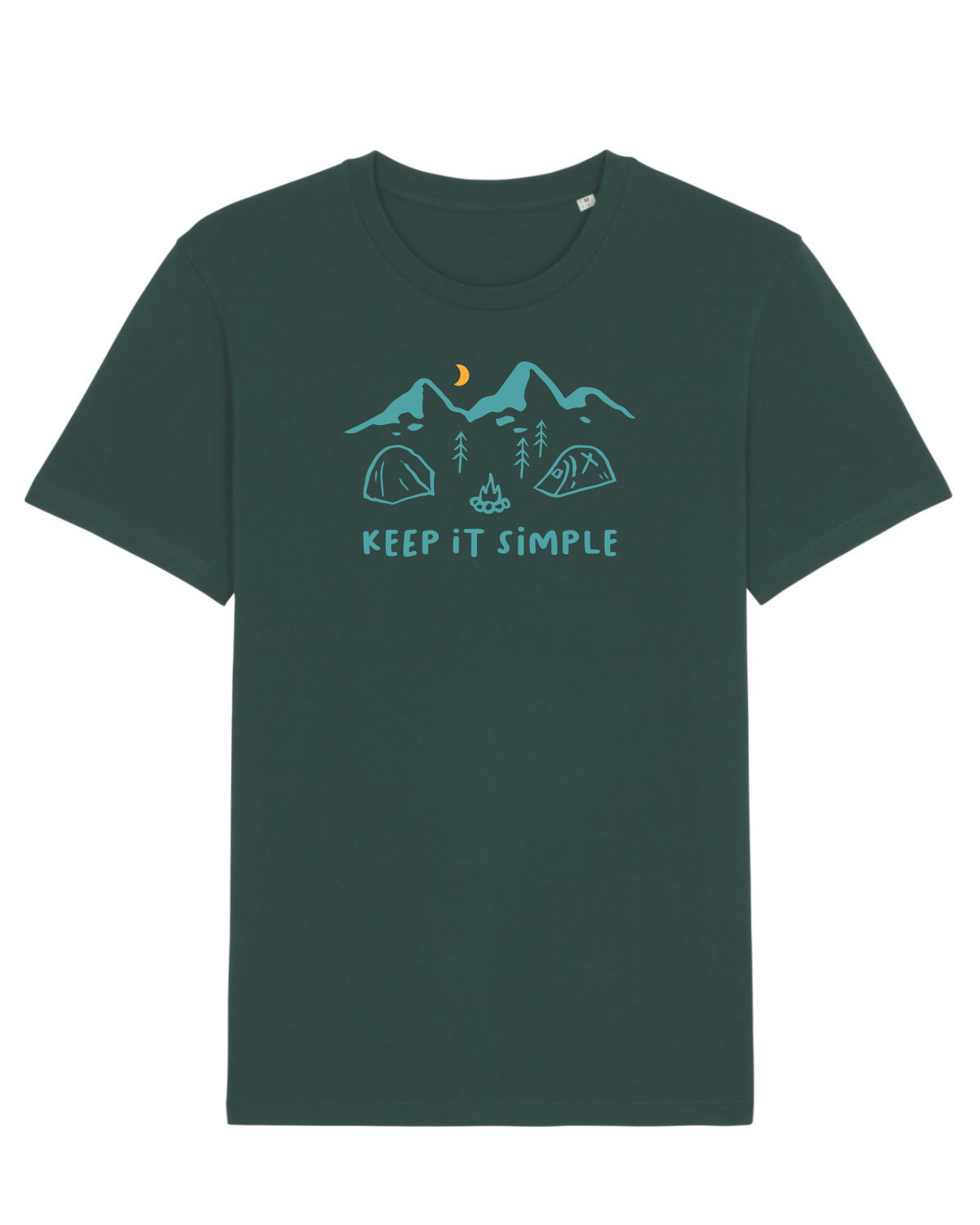 Tricou unisex/barbati, model color, mesaj "Keep it simple (base camp)", ideal pentru pasionatii de drumetie, camping sau alte activitati outdoor.
