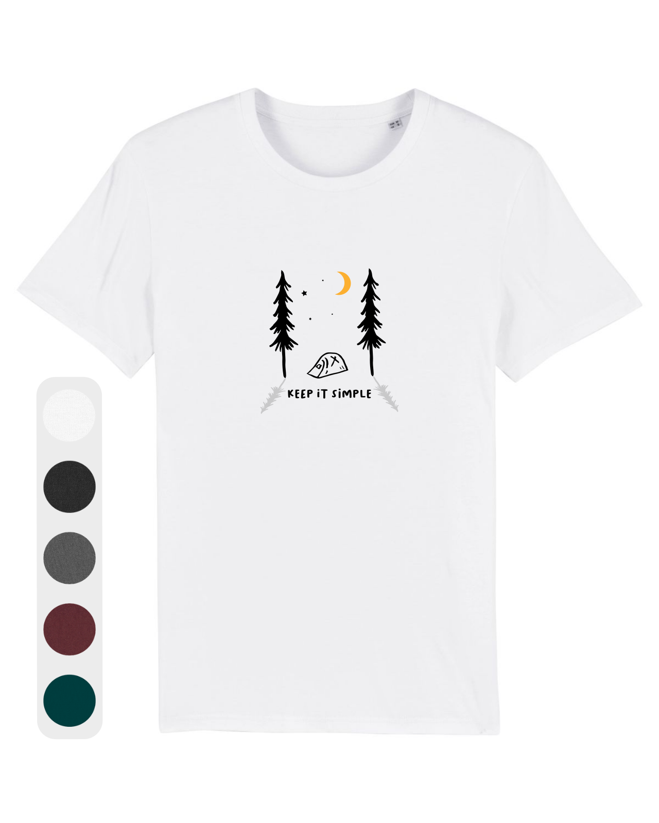 Tricou unisex/barbati, model color, mesaj "Keep it simple (under the moon)", ideal pentru pasionatii de drumetie, camping sau alte activitati outdoor.