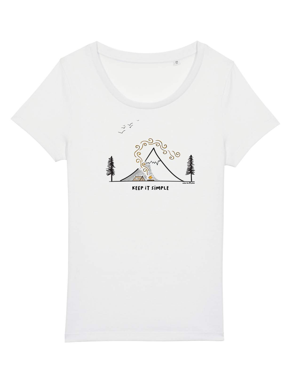 Tricou femei, model color, mesaj "Keep it simple (at the base)", ideal pentru pasionatele de drumetie, camping sau alte activitati outdoor.