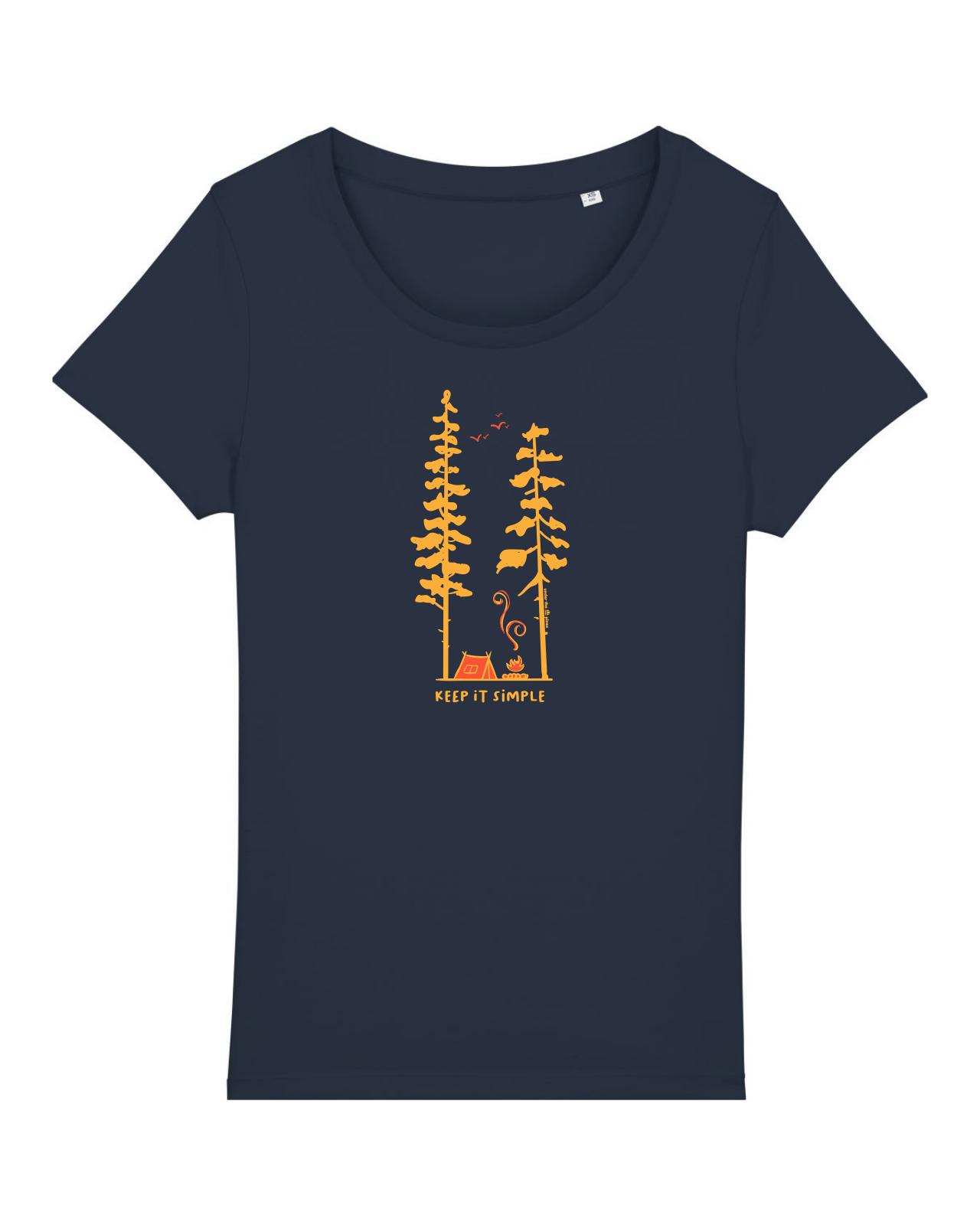 Tricou femei, model color, mesaj "Keep it simple (camping in the woods)", ideal pentru pasionatele de drumetie, camping sau alte activitati outdoor.