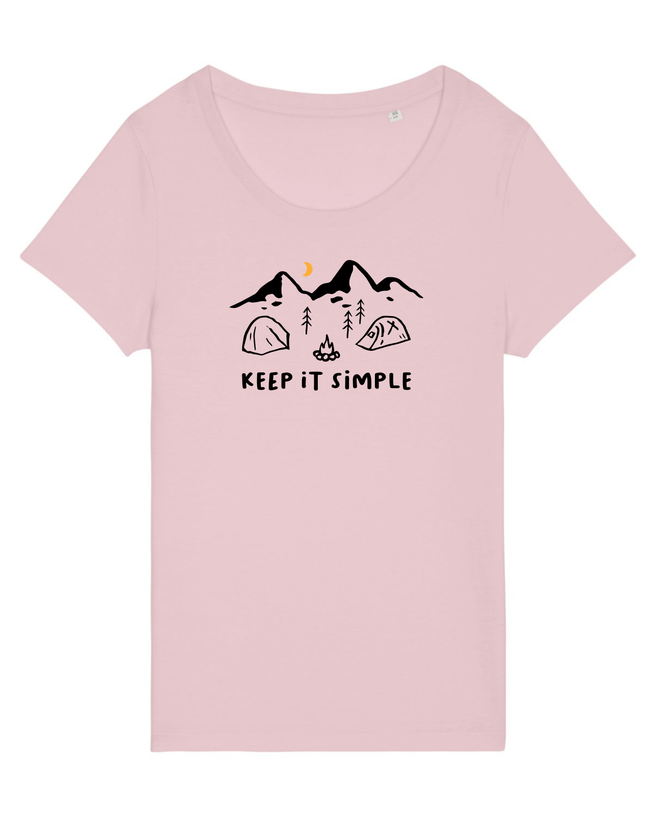 Tricou femei, model color, mesaj "Keep it simple (base camp)", ideal pentru pasionatele de drumetie, camping sau alte activitati outdoor.