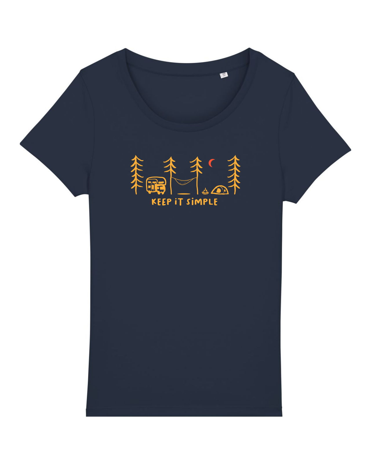 Tricou femei, model color, mesaj "Keep it simple (camping life)", ideal pentru pasionatele de drumetie, camping sau alte activitati outdoor.