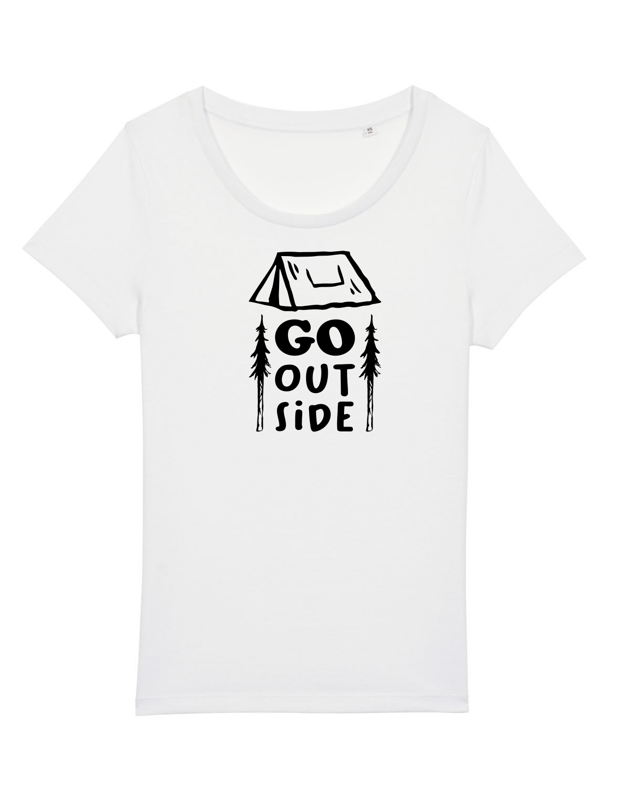 Tricou femei, model color, mesaj "Keep it simple (go outside)", ideal pentru pasionatele de drumetie, camping sau alte activitati outdoor.