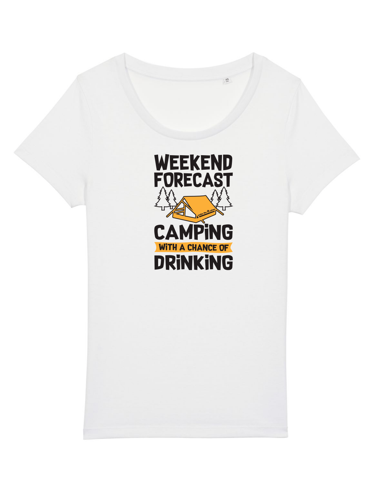 Tricou femei, model color, mesaj "Weekend Forecast", ideal pentru pasionatele de drumetie, camping sau alte activitati outdoor.
