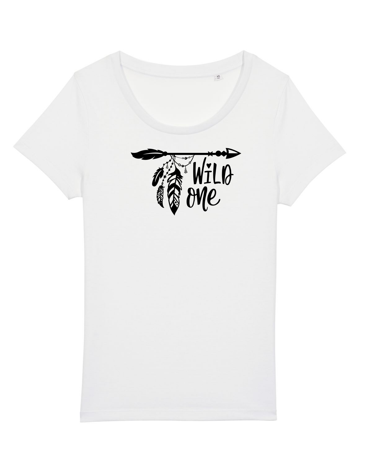 Tricou femei, model color, mesaj "Wild one", ideal pentru pasionatele de drumetie, camping sau alte activitati outdoor.
